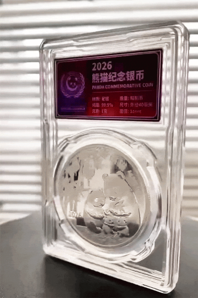 2026熊猫纪念银币以精制币造币工艺铸造,熊猫的毛发、眼神等细节栩栩如生,带来指尖可触的生动质感。