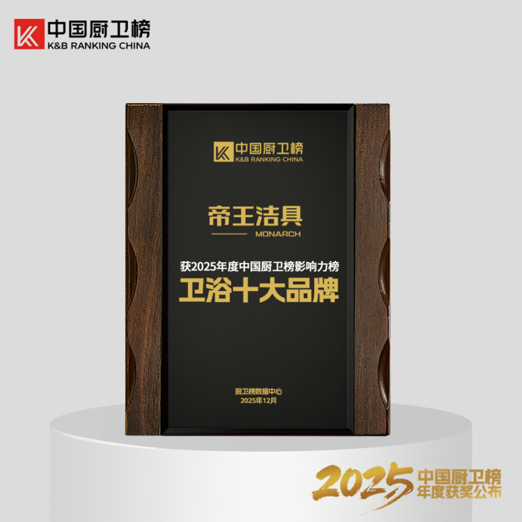 近日,“2025中国厨卫榜”榜单正式发布。帝王洁具凭借其深厚的品牌积淀、持续的创新动力与出色的产品表现,一举荣获“卫浴十大品牌”、“年度消费者喜爱品牌”、“十大创新卫浴品牌”、“智能卫浴十大品牌”、“浴室柜十大品牌”五项大奖,成为本届榜单中备受瞩目的焦点。