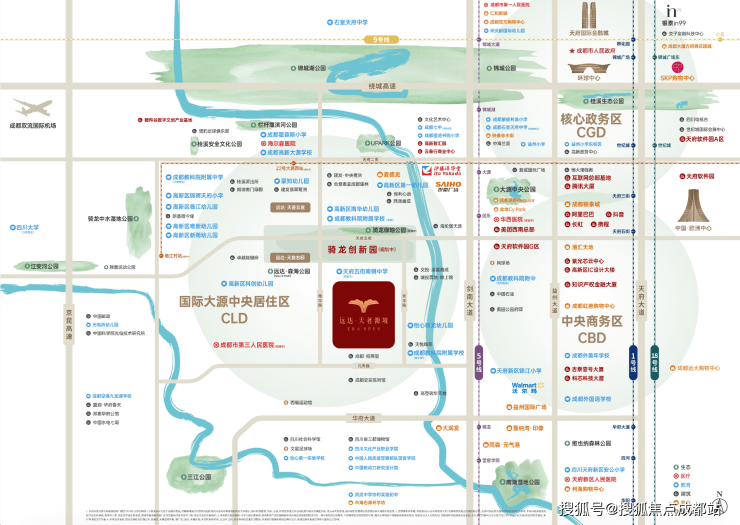 远达天著源境位于高新南大热的大源西板块,作为大源最后一块可供整体开发的区域,大源西东至剑南大道,北达天府四街,南、西与天府新区、双流交界,先天区位条件良好。